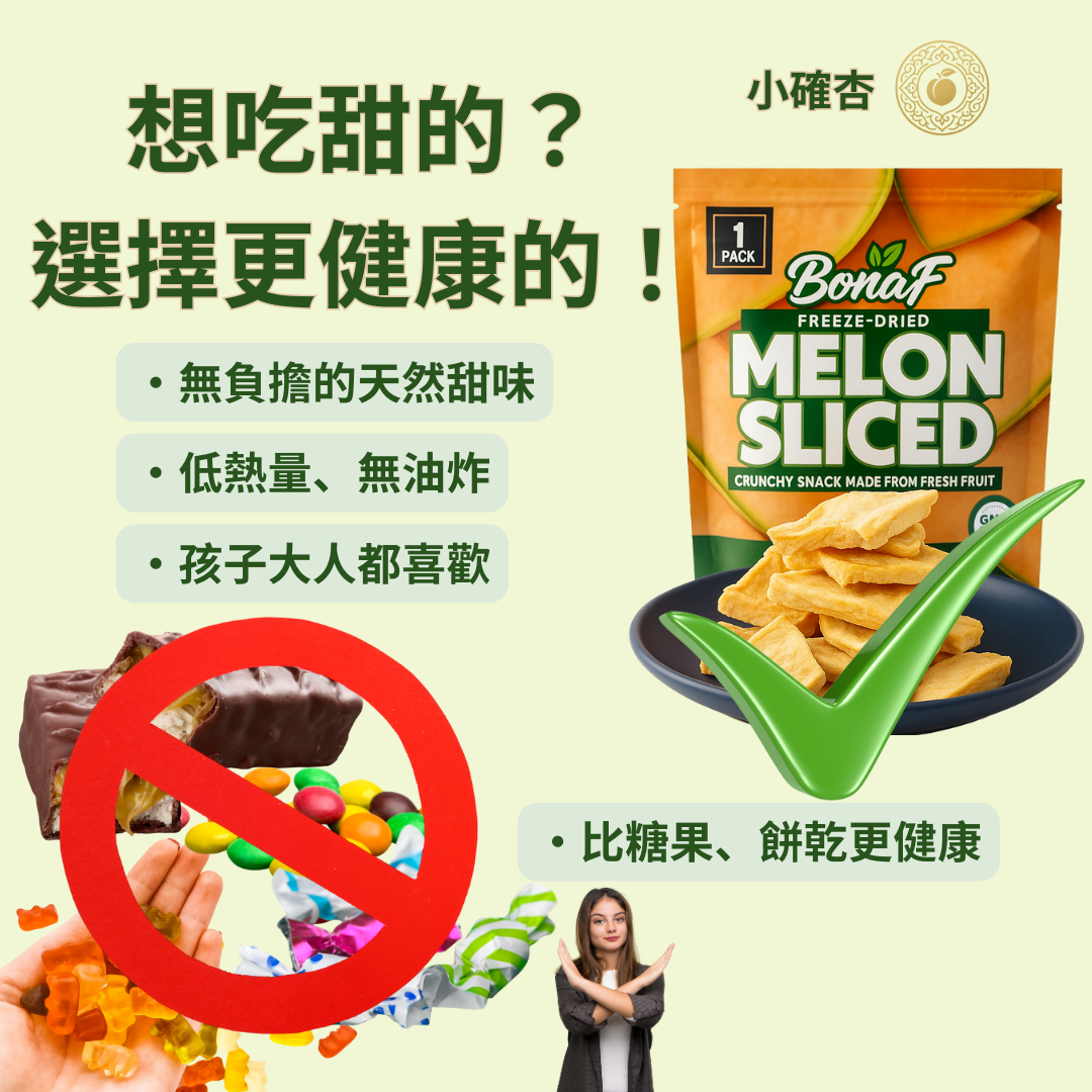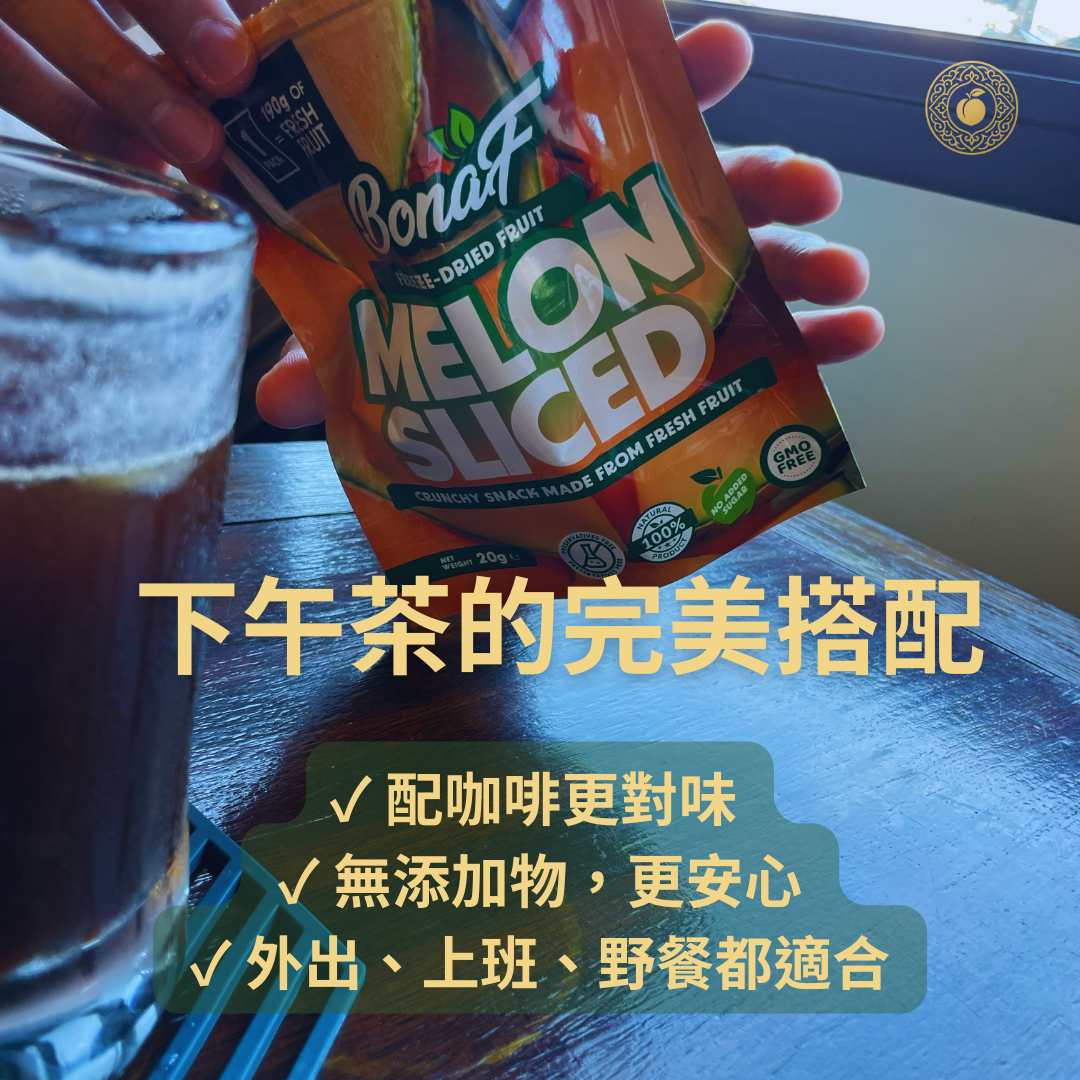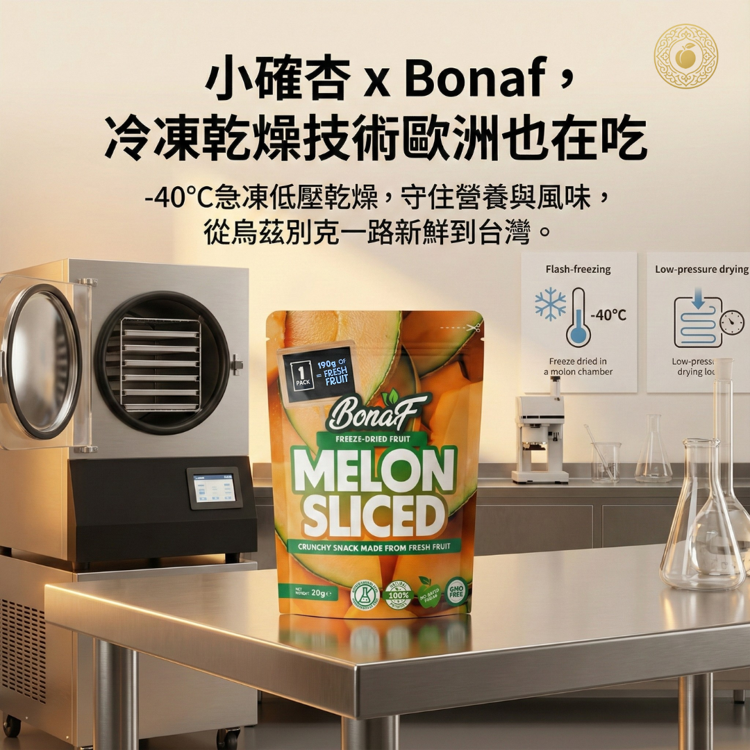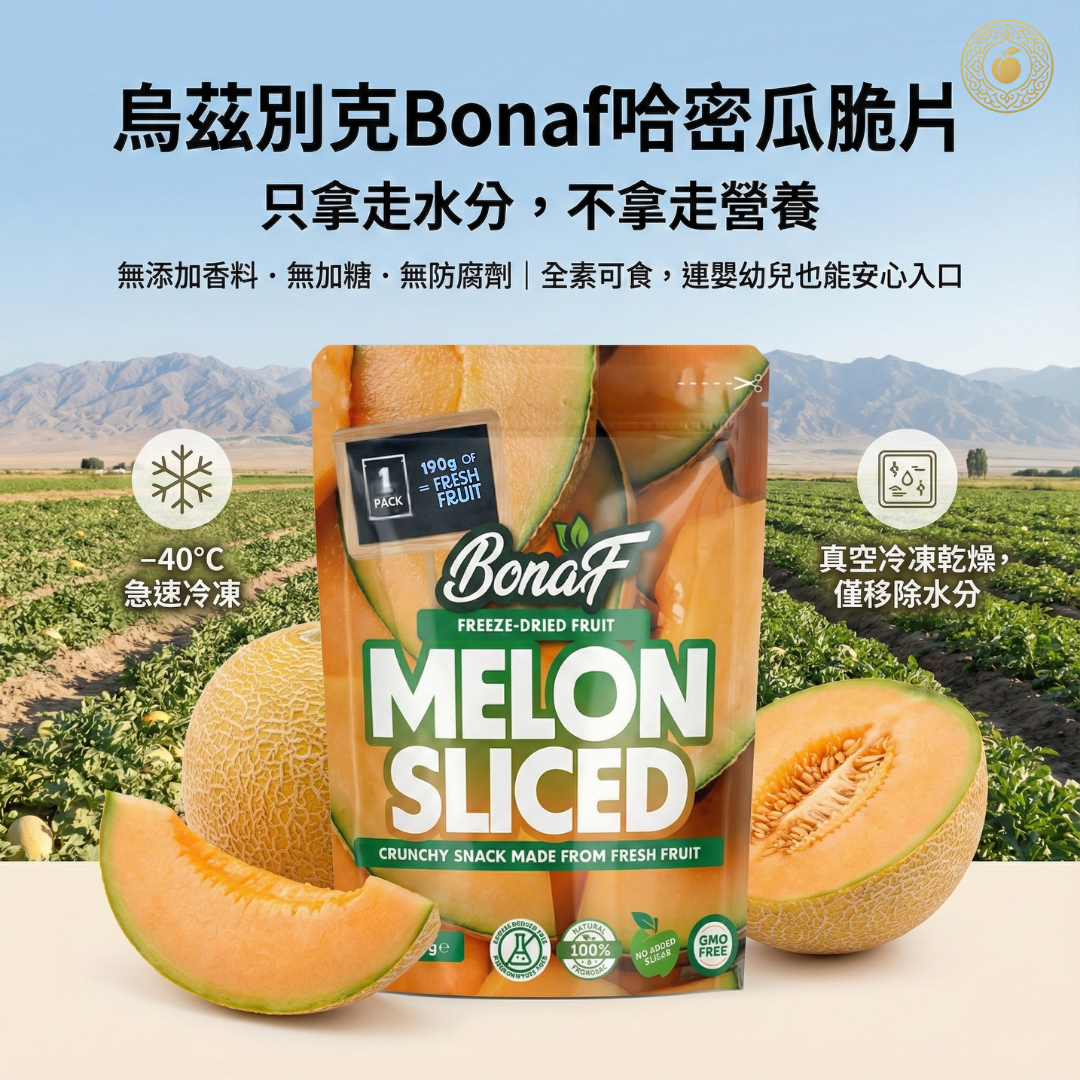 不同於一般烘焙果乾,Bonaf 凍乾哈密瓜不經高溫加工、不添加糖分與香料,口感酥脆、入口即化,散發濃郁天然果香。