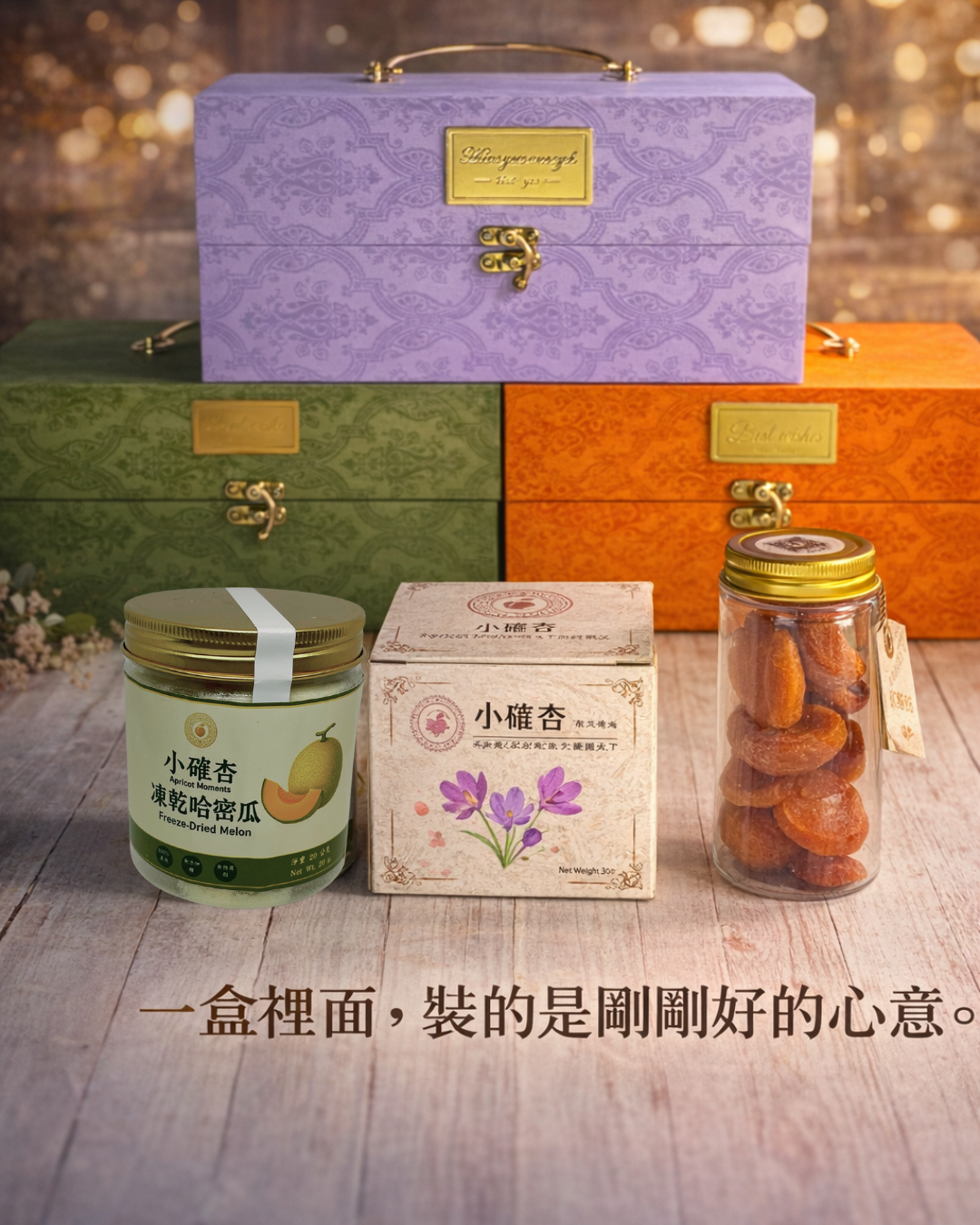 小確杏禮盒系列,結合來自中亞的天然食材與精緻質感包裝,為企業客戶與家庭送禮打造安心且有層次的選擇。